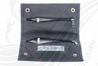Кисет для самокруток P&A из искусственной кожи. Внутри имеет три кармана из каучука для хранения табака, карман для аксессуаров и держатель для папиросной бумаги. Эта серия недорогих, но качественных курительных аксессуаров производится в Индии по заказу и под контролем итальянской компании Parenti&Agostinelli из Милана.