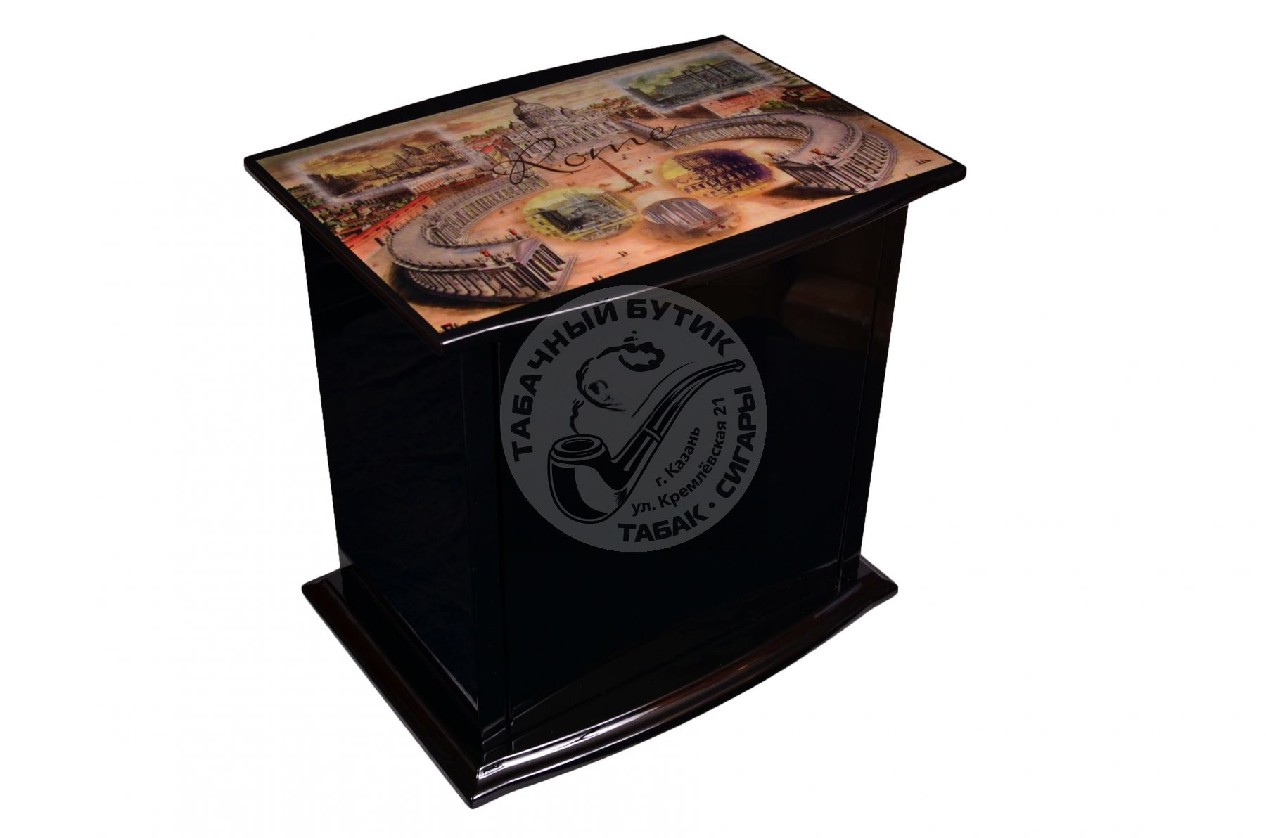 Хьюмидор-шкаф на 50-60 сигар премиум-класса из Итальянской мастерской Mastro de Paja (Мастро де Пайа), всемирно известной своими курительными трубками и аксессуарами для сигар. Узнать больше о компании и ассортименте можно на сайте www.mastrodepaja.it . Данная модель посвящена «Вечному городу» и характеризуется строгим дизайном, подходящим для большинства интерьеров. Передняя крышка на магнитной защелке скрывает 6 съемных лотков с увлажнителем и разделительной планкой на каждом. Герметичность обеспечивается уплотнителями по периметру дверцы. Корпус представляет собой комбинацию нескольких видов дерева, что обеспечивает стойкость к деформации при колебаниях температуры и влажности (ведь разница во влажности внутри и снаружи хьюмидора может достигать 50%). Внутренняя отделка выполнена из испанского кедра, произрастающего в Латинской Америке. Снаружи шестислойный рояльный лак и картина с видами Рима: Собор сан Пьетро, Пьяцца Навона, Фонтан Треви, Колизей. В комплекте 6 увлажнителей с акриловым полимером (на каждом лотке), электронный термогигрометр Passatore, подробная инструкция по уходу. Подарочная упаковка.