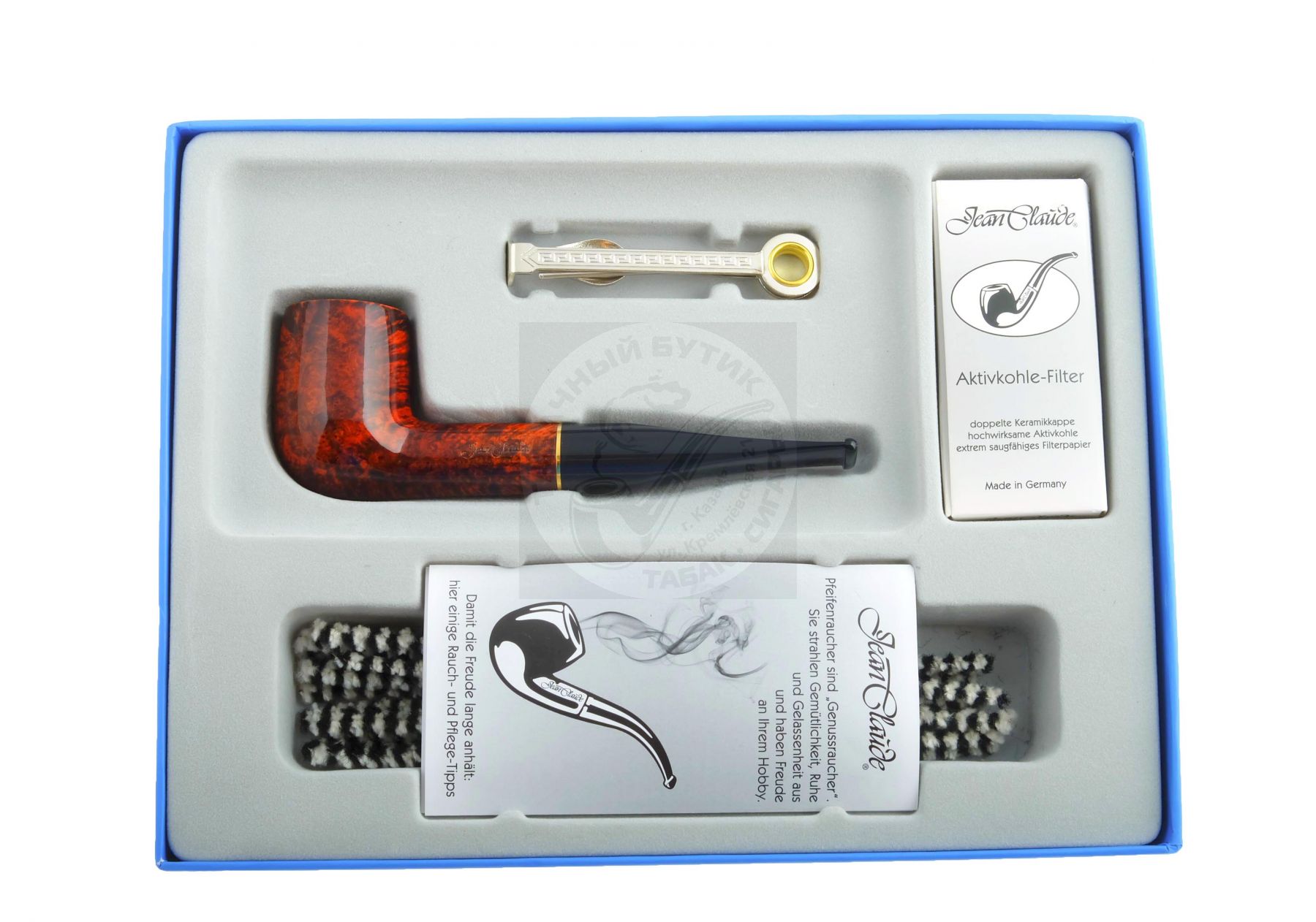 Набор начинающего трубокура Jean Claude в дисплее. В составе набора: Итальянская трубка из бриара с акриловым мундштуком под фильтр 9 мм, инструмент для ухода за трубкой (тройник), 10 конических ершиков, 10 угольных фильтров, брошюра-инструкция по курению трубки на английском и немецком языках.