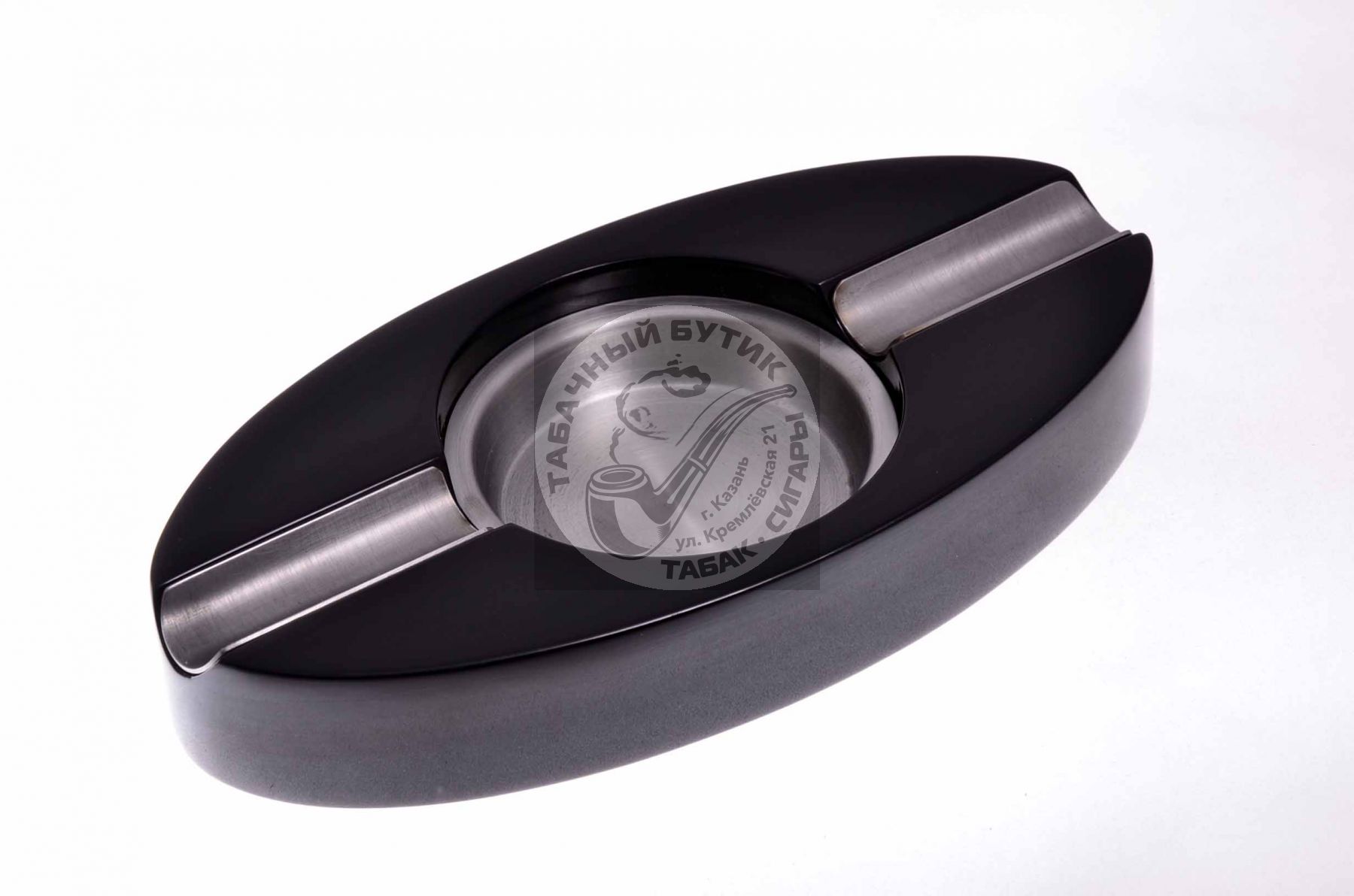 Размер 20х10х3Пепельница на 2 сигары тайваньской марки Tom River. Съемная чашка из металла. Отделка-черный глянцевый лак.