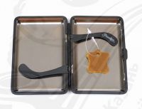 Портсигар на 14 сигарет стандартного размера King Size (85 мм) немецкого бренда курительных аксессуаров Passatore. Корпус из металла с черненой рамкой и наружной отделкой из натуральной буйволиной кожи с выделкой в винтажном стиле Дикого Запада. Царапины и потертости на такой коже легко удаляются. Открывание одним нажатием благодаря подпружиненным петлям. Удобные металлические прижимы для сигарет.