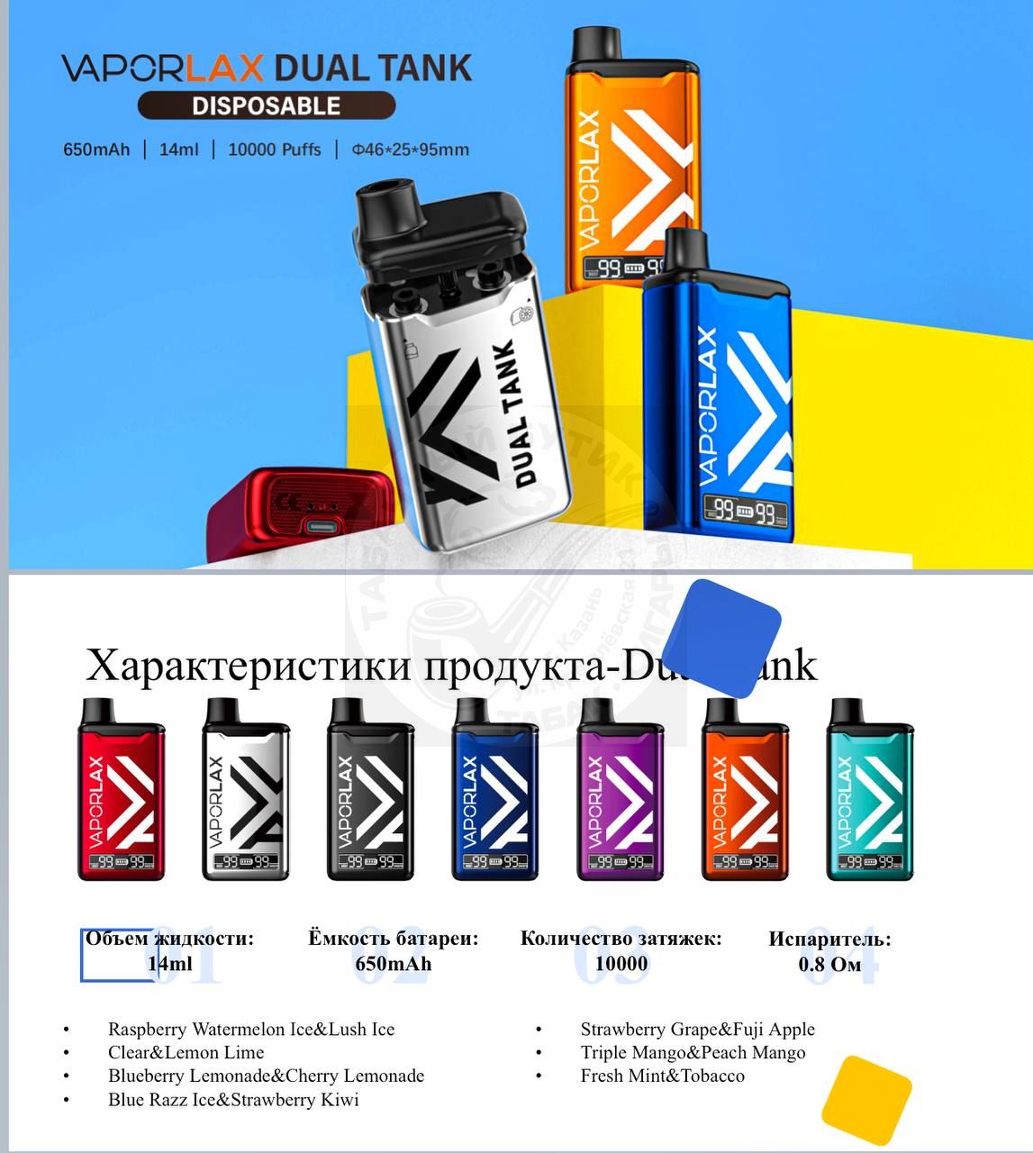 Vaporlax EA10000 - это двойной бак, двойная катушка, два вкуса в 1 устройстве, переключатель для изменения вкусов.