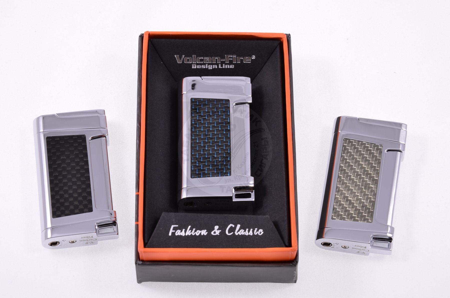 Отличная газовая зажигалка эконом-класса, заправляется. Идеально подходит для розжига сигар. Корпус выполнен из нержавеющей стали с декоративными боковыми вставками из карбона. Подарочная коробка.